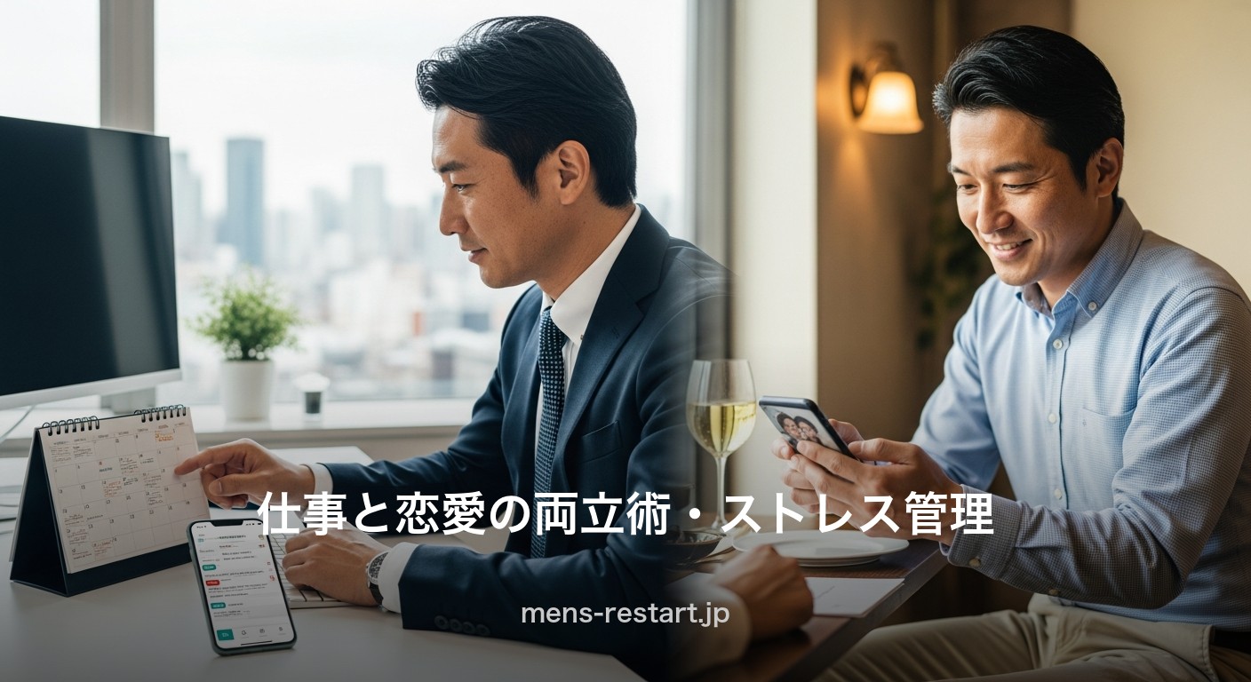 仕事と恋愛の両立は「時間を先に確保する」「ストレスを管理する」「恋愛の目的を明確にする」の3つが核心です。「忙しい」は言い訳にならない——時間は作るものです。仕事も恋愛も充実した40代バツイチ男性は、間違いなく魅力的です。